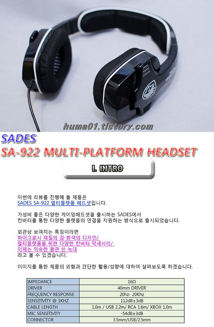 필드테스트/체험단/헤드폰/이어폰/스피커 늑대 멀티플랫폼활용~SADES SA-922 헤드셋 kamui030 2014. 1. 11. 13:43 728x90 저작자표시 비영리 변경금지 (새창열림)