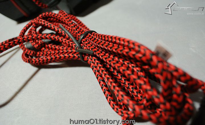 블랙&레드 컨셉의 디자인을 완벽하게 유지한 모습을 보입니다.(패브릭소재의 케이블 & 사운드유닛까지)