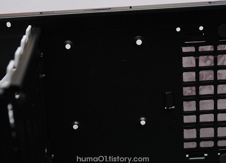 (M-ATX 메인보드를 위한 홀은 물론, ATX보드 사용시에도 활용가능한 홀이 준비되어 있습니다.)