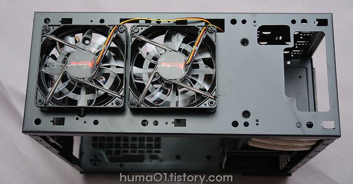상단배기팬 2개를 섀시 외부에 장착하도록 해주어,