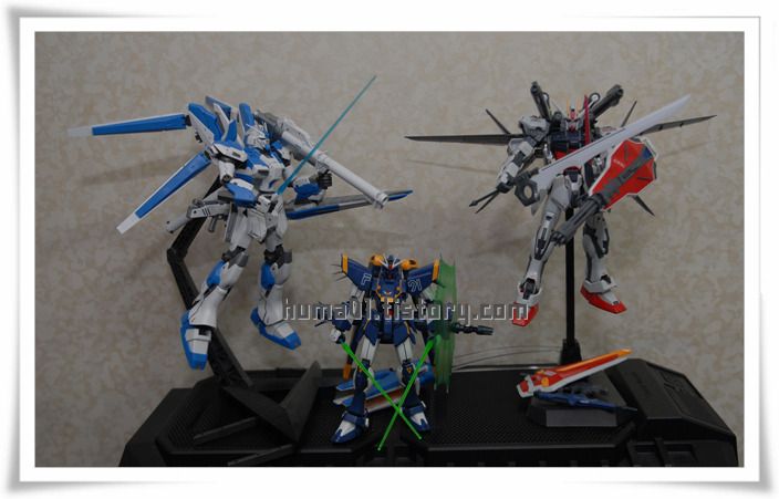 하이뉴건담 - 스트라이크건담 I.W.S.P 와 가운데는 이번에 새멤버로 들어온 F91해리슨 입니다.